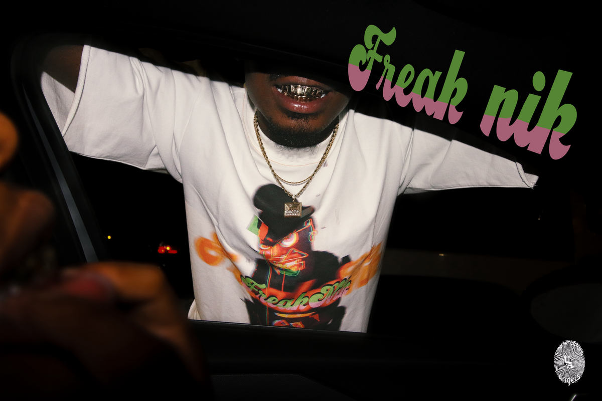 Front: A vibrant, glitch-art inspired graphic of a figure with the text "Freak Niq" in eye-catching colors.